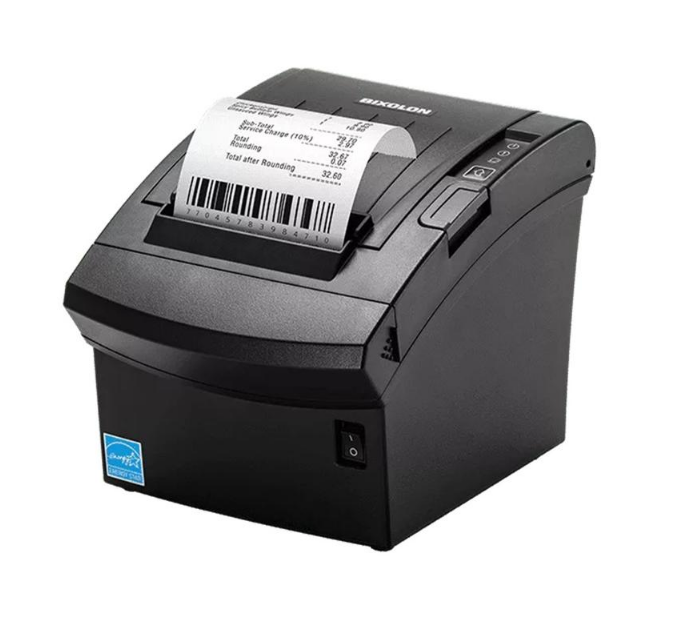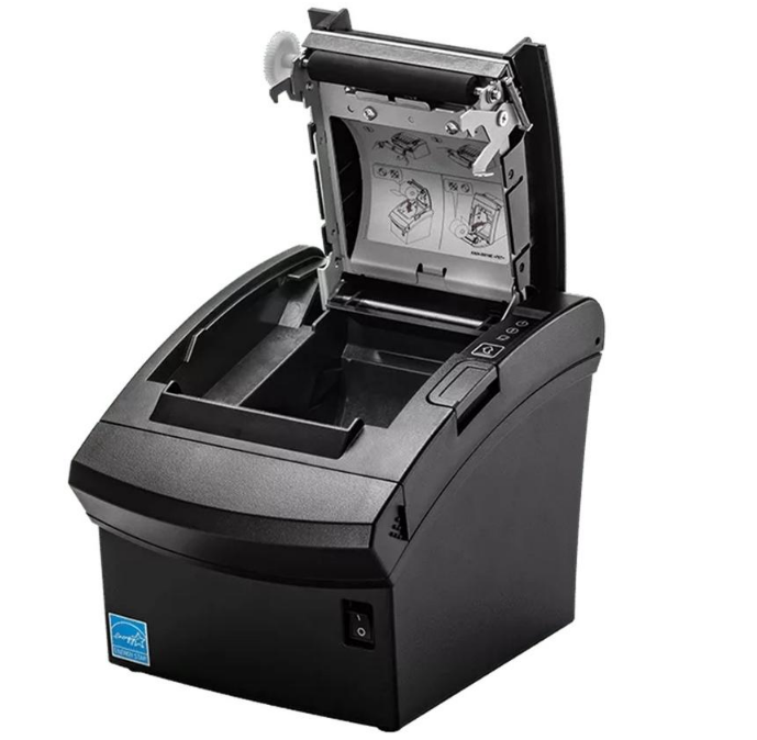 La SRP-350plusV es una impresora térmica de recibos y tickets de 80 mm (3 pulgadas) altamente funcional que permite imprimir texto, códigos de barras e imágenes a velocidades de hasta 400 mm/s con una